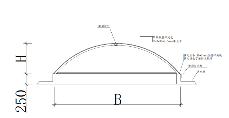 1、简介:SZ圆拱型采光带由基础、框架、采光板、泛水板等组成,根据洞口大小可分为不同型号(并可按客户要求进行非标设计、制造)